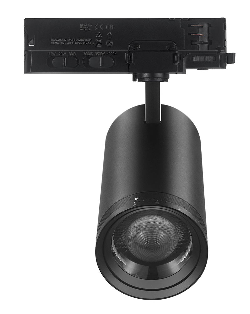 Med sitt kompakta format på Φ85*170 mm smälter armaturen enkelt in i alla typer av miljöer. Tack vare flera justerbara inställningar kan belysningen skräddarsys exakt efter behov. Den inbyggda flimmerfria drivern med CRI >90 säkerställer stabilt och behagligt ljus där färger återges naturligt – idealiskt för butiker, showrooms, gallerier och utställningsytor.